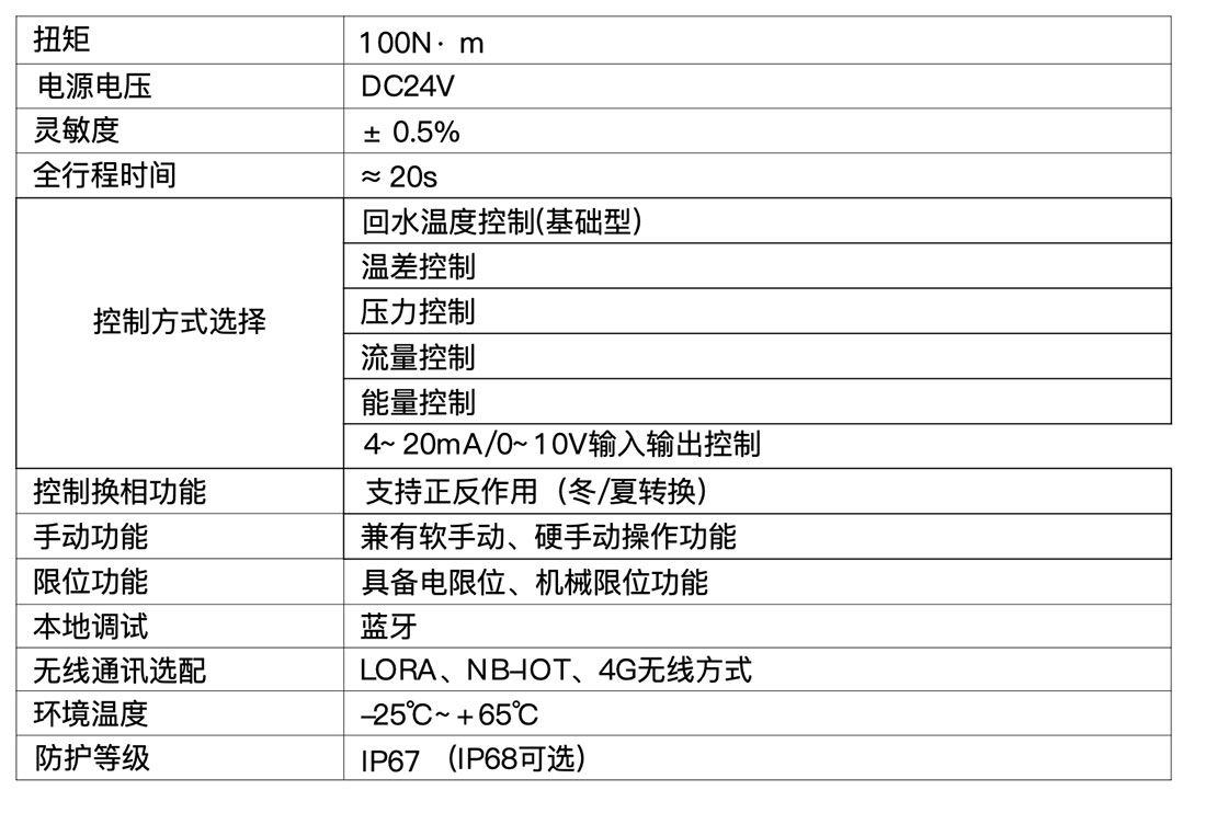 三.执行器技术参数