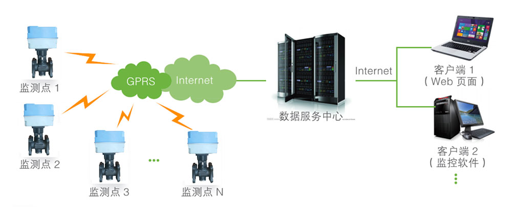 该系统主要包括:物联网温控平衡阀、数据集抄器、网络基站以及服务平台管理软