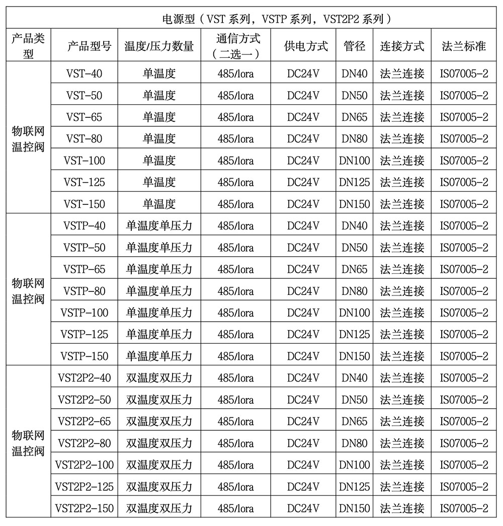 VST/VSTP系列物联网温控平衡阀为电源型,其中: